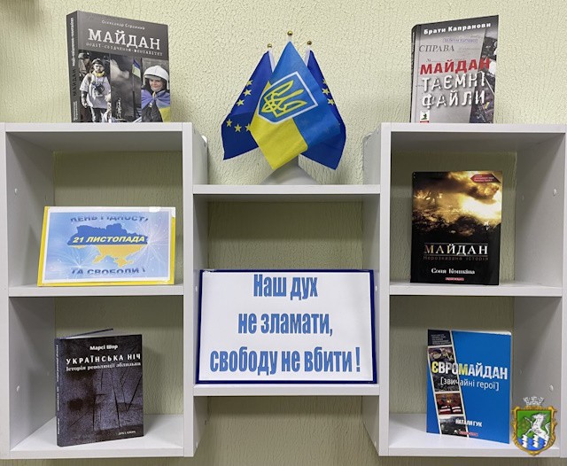 До Дня Гідності та Свободи в Іванівській бібліотеці - філії оформлено книжкову поличку «Наш дух не зламати, свободу не вбити», яка нагадує нам про події, що назавжди змінили хід української історії.